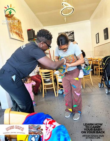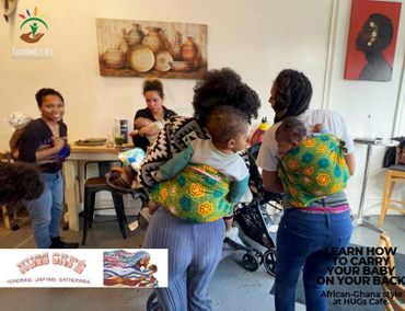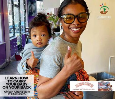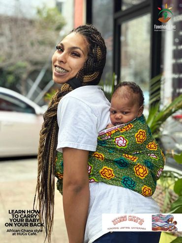 Here, we mix the exciting customs of Ghana with cultures from the diaspora. Our signature baby wearing style, 'Tur Wo Ba™️' will teach you how to carry your baby on your back, and feel the warm care of Ghana at home.